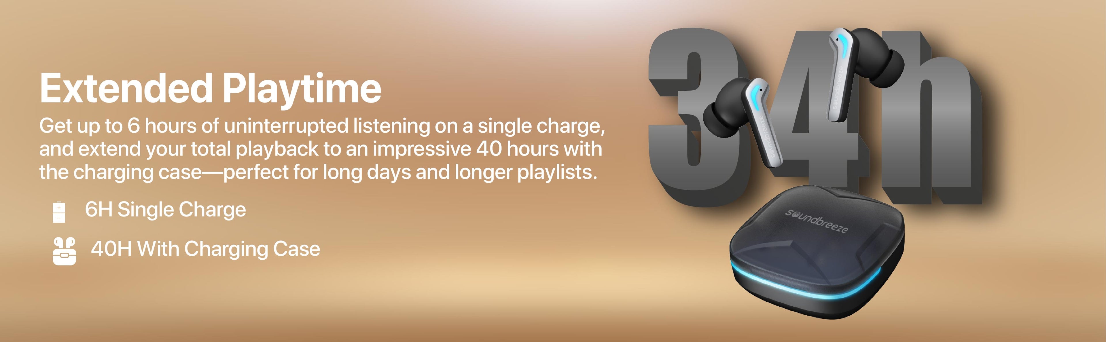 Soundbreeze Fury earbuds are the perfect companion for gamers and music lovers alike. These true wireless earbuds offer low-latency audio for an immersive gaming experience and boast a long-lasting battery life. The 13mm speaker drivers deliver powerful and detailed sound, while the IPX4 water resistance rating ensures protection from sweat and splashes. With Bluetooth 5.3 for seamless connectivity and a comfortable fit, the Soundbreeze Fury earbuds are designed for all-day wear.