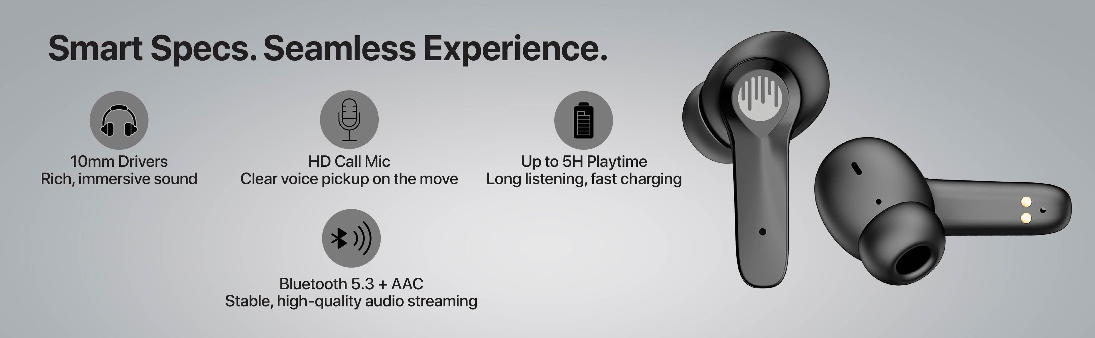 - 4-5 hours of playtime with 40mAh earbuds and 400mAh case